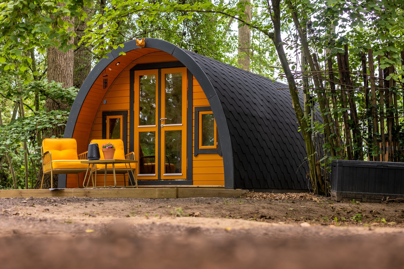 Het sfeervol ingerichte huysje, geschikt voor maximaal 3 personen, ligt midden in de natuur. Alle huysjes hebben een houtgestookte hottub. Ontdek ons huysje met privé sauna en buitendouche. Koken kan in het Kookhuys, een unieke buitenkeuken.